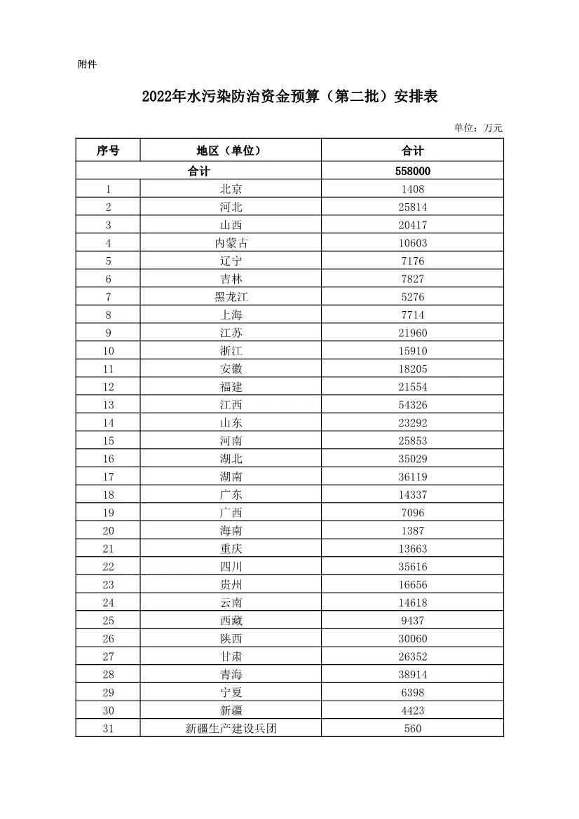 附件:2022年水污染防治資金預(yù)算(第二批)安排表