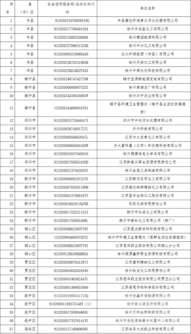 徐州市公布2022年地下水污染防治重點排污單位名錄,共有37家企事業(yè)單位。