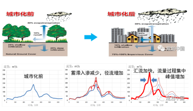 “快速的城鎮(zhèn)化急劇改變了城市的下墊面,再加上氣候變化的疊加影響,水循環(huán)過程發(fā)生了顯著變化,造成城市內(nèi)澇加劇。” 王浩說。