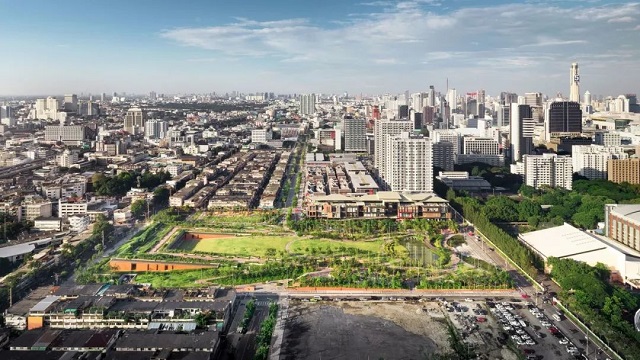 泰國Landprocess景觀設計公司創始人科查孔·沃拉霍姆(Kotchakorn Voraakhom)致力于雨洪管理設計。她曾提到:“為什么我們的設計思路不是以自然共生,而是要與其為敵呢?”在接受CNN采訪時,她指出:“氣候變化導致城市下沉,現有的基礎設施已無法抵御重大洪澇災害。”