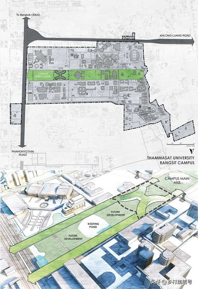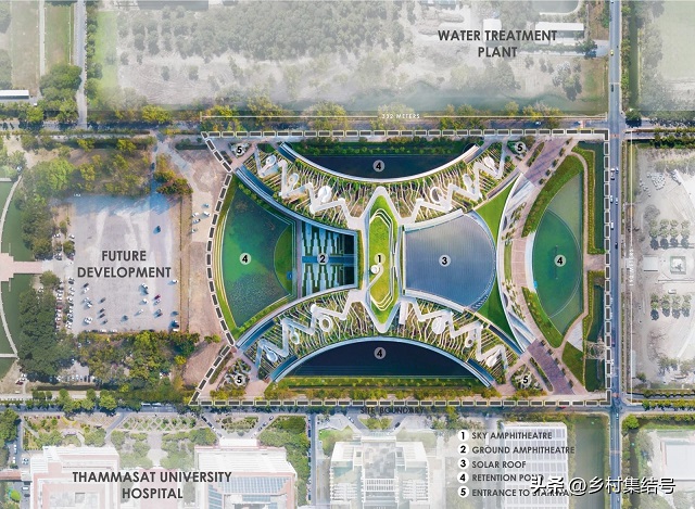 于是,為了振興其所處的土地,泰國國立法政大學(xué)(Thammasat University),在設(shè)計師的幫助下,重新利用了建筑上被忽視的236806平方英尺的(約22000平方米)屋頂空間,包括有7000平方米的農(nóng)業(yè)區(qū),打造了一個亞洲最大的屋頂有機農(nóng)場。農(nóng)場融合了可持續(xù)糧食生產(chǎn)、能源再生、有機廢物、水資源管理,創(chuàng)造了校園綜合循環(huán)經(jīng)濟,同時農(nóng)場還可滿足城市休閑,是一處公共活動空間。接下來,小編就說一說這座屋頂農(nóng)場的具體設(shè)計。