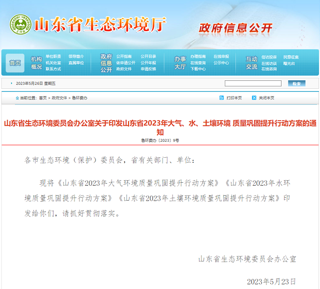 5月23日,山東省生態環境廳發布《山東省2023年水環境質量鞏固提升行動方案》,主要目標為國控重點斷面水質優良(達到或優于Ⅲ類)比例不低于68.6%,V類及以下水體保持動態清零,其中南四湖流域國控斷面水質優良比例達到100%,南水北調干線優良水體比例達到100%,黃河流域水環境質量保持穩定。16個設區市地表水環境質量排名力爭退出全國“后30”??h級及以上城市集中式飲用水水源水質達到或優于Ⅲ類比例不低于97.4%。山東省近岸海域優良水質比例達到91%。