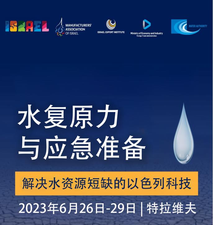 中國城鎮(zhèn)供水排水協(xié)會受以色列經(jīng)濟與產(chǎn)業(yè)部及駐華使館的邀請于2023年6月26-29日派員參加了在以色列第二大城市特拉維夫舉行的“2023以色列水復(fù)原力與應(yīng)急準備大會”( the Water resilience & Emergency preparedness event 2023 in Tel Aviv)。本次活動是以色列面向國際社會集中展示其解決水資源短缺以及應(yīng)對突發(fā)事件保證正常供水方面的技術(shù)的一次活動。“水復(fù)原力”是指水在使用之后通過一系列水處理技術(shù)使其恢復(fù)到原狀態(tài)的能力,在這個理念指導(dǎo)下,污水及海水都可以通過技術(shù)成為水資源,這也是以色列在荒漠國土上生存發(fā)展的技術(shù)保障。