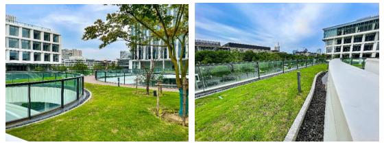 通過(guò)“園區(qū)+海綿”,打造“碧水環(huán)洲”的花園式科技園區(qū)。項(xiàng)目應(yīng)用海綿技術(shù)包括: