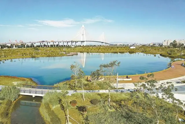 值得一提的是,南濱綠地公園不僅利用中心湖、濕地花海等水系作為濕塘容納場地內匯流雨水,形成了景觀湖、自然生態護岸,還以生態海綿體循環滋養湖景,成為市民及游客休閑娛樂的好去處。