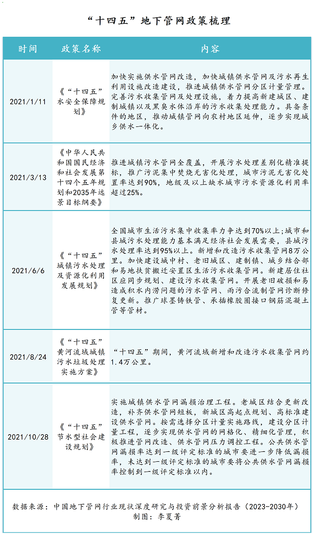 進入“十四五”以來,“地下管網建設”受到空前重視,從國家到地方均制定了相應規劃,同時明確目標并在財政上予以支撐。可以說,管網攻堅戰正式啟動。