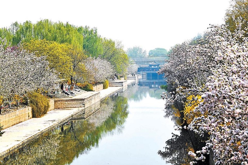 如今,清河成為名副其實的“清”河,出境斷面達到IV類水體,水面實現徹底“還清”。隨著春天的到來,清河之洲、清河河道兩岸繁花盛開,特別是清河左岸G6高速至黑泉路段的碧桃、連翹、紫葉李、榆葉梅和西府海棠等花卉都已競相開放,繁花似錦。而清河下段濱水慢行系統內的太平莊中街至北苑東路段,巡河路旁種植的海棠樹也迎來了盛花期,美不勝收。