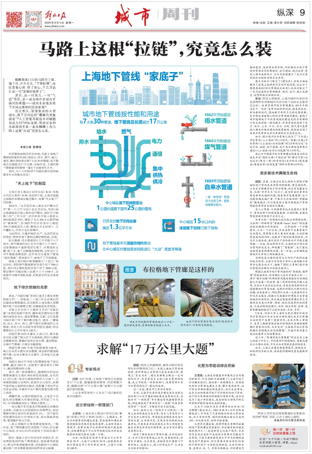 日前,《解放日報(bào)》記者訪談了上海市政總院總工程師(結(jié)構(gòu))王恒棟,就城市地下管線建設(shè)和管理方面作深入探討,文章刊發(fā)于8月5日出版的《解放日報(bào)》縱深專欄,原標(biāo)題為《馬路上這根“拉鏈”,究竟怎么裝》。