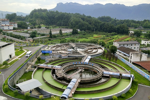 湖北宜昌,在宜昌市夷陵區(qū)太平溪鎮(zhèn)許家沖村,污水處理廠正在對太平溪集鎮(zhèn)及周邊收集來的污水進(jìn)行凈化處理。